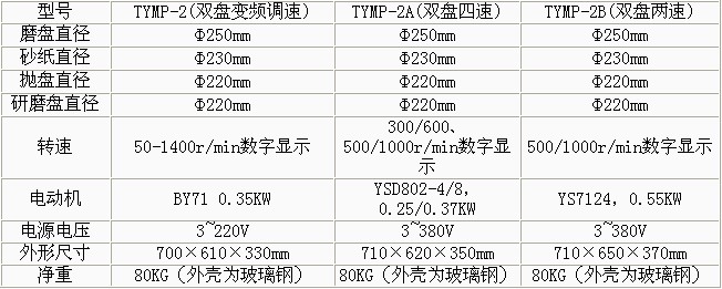 產(chǎn)品概述: •TYMP-2無級變速金相試樣研磨拋光機 無級調(diào)速,全自動金相拋光研磨機,轉(zhuǎn)動平穩(wěn),金相拋光研磨機,噪音低。 磨、拋、研盤轉(zhuǎn)速獨立操作。適應各種材料的試樣制備 TYMP-2A雙盤四速金相試樣研磨拋光機 雙盤四速,,轉(zhuǎn)動平穩(wěn),金相切片研磨機,噪音低,金相樣品自動研磨機,磨、拋、研盤轉(zhuǎn)速獨立操作。適應各種材料的試樣制備 TYMP-2B雙盤雙速金相試樣磨拋機 雙盤雙速,金相試樣自動研磨機,轉(zhuǎn)動平穩(wěn),金相研磨機價格,噪音低,金相研磨機,磨、拋、研盤轉(zhuǎn)速獨立操作。適應各種材料的試樣制備。 功能特點: •該機集污盤和罩采用玻璃鋼整體制成,,造型美觀、材料考究、經(jīng)久耐用、維護保養(yǎng)方便。 本機集三種功能為一身,,使用時只需更換磨盤或拋盤就能完成各種試樣的粗磨、細磨、干磨、濕磨及拋光等各道工序。 技術(shù)參數(shù):
