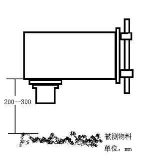將傳感器安裝于需要測定物料含水量的部位傳感器與被測物料面基本垂直并保持間距為250mm左右(見圖)。